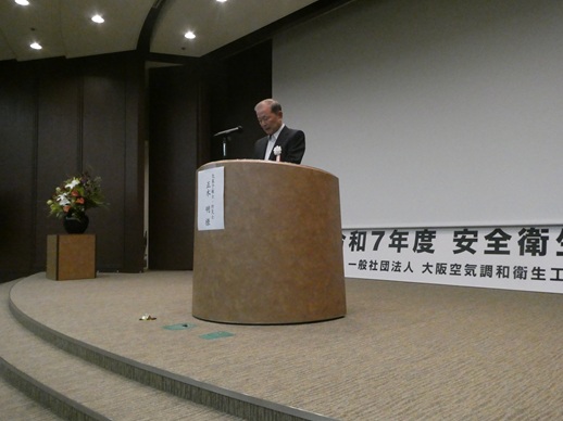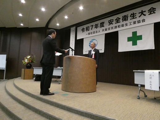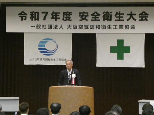 | 令和7年度安全衛生大会が建設交流館で開催されました。 開会の挨拶で北村会長は「高年齢労働者の増加を受け、25年度施工の改正労働安全衛生法の下、 事業者の努力義務として労働災害防止に細心の配慮をお願いしたい」とあいさつした。 | ![]() 北村会長より挨拶 |